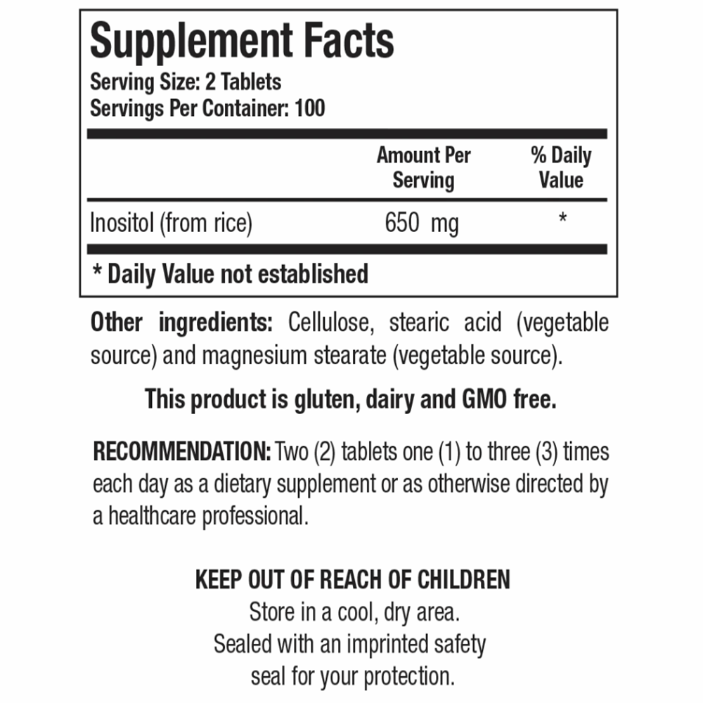 Inositol, 200 tablets.